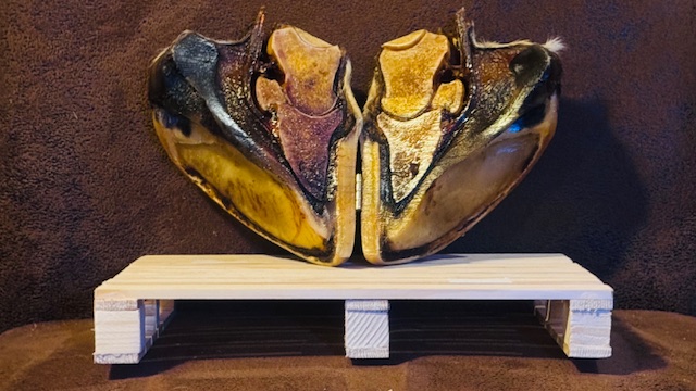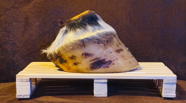 Auf Palette geliefert. Chronischer Rehebefund, Hufbeinspitze abgebaut. Auf Wunsch mit Luwex Rehepolster.